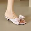 Fashion 2025Bling Kitten High Heels Slippers Bow Sandals Women Square Toe Shoes Summer