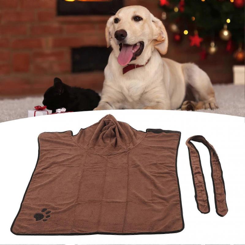 Dog Towel Bathrobe Strong Absorbent Soft Warm Pet Dog Drying Coat with Waistband for Cat L