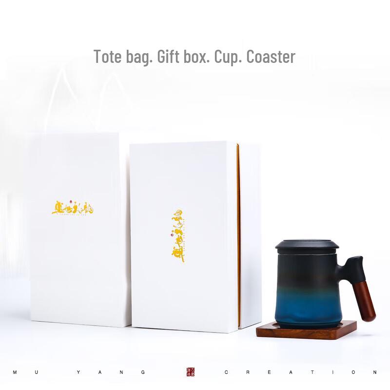 Chaxun Ceramic Tea Cup with Wooden Handle and Coaster
