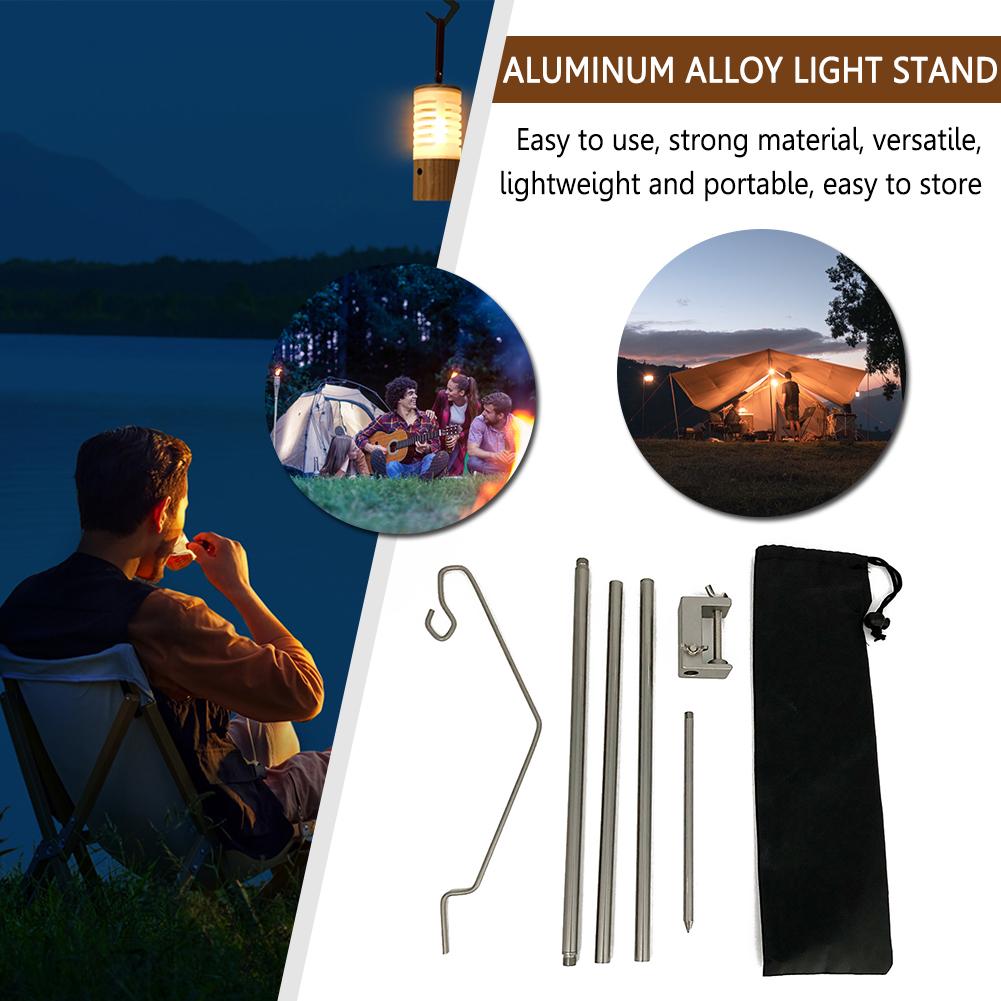 Foldable Lamp Post Pole Aluminum Alloy Hanging Light Pole Ground/Desktop Mount Height Adjustable for Camping Fishing Picnic BBQ