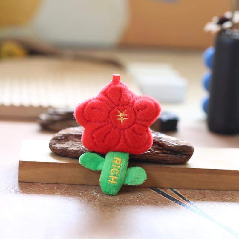 Adorable Red Flower Plush Toy Keychain Soft Short Plush Stuffed Doll Accessory
