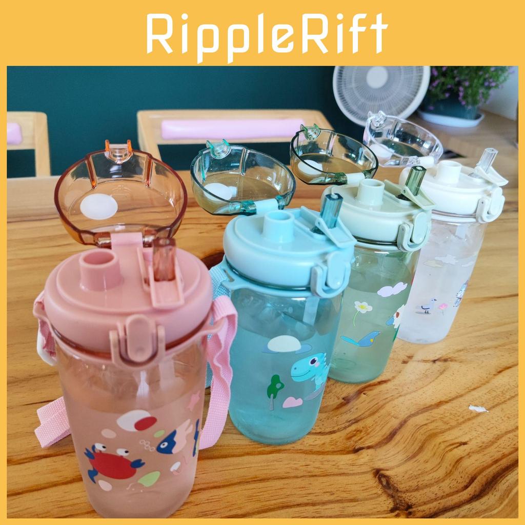 Children's Double-drink Straw Water Bottle With Strap And Lock Buckle Outdoor Leisure Fitness Cup