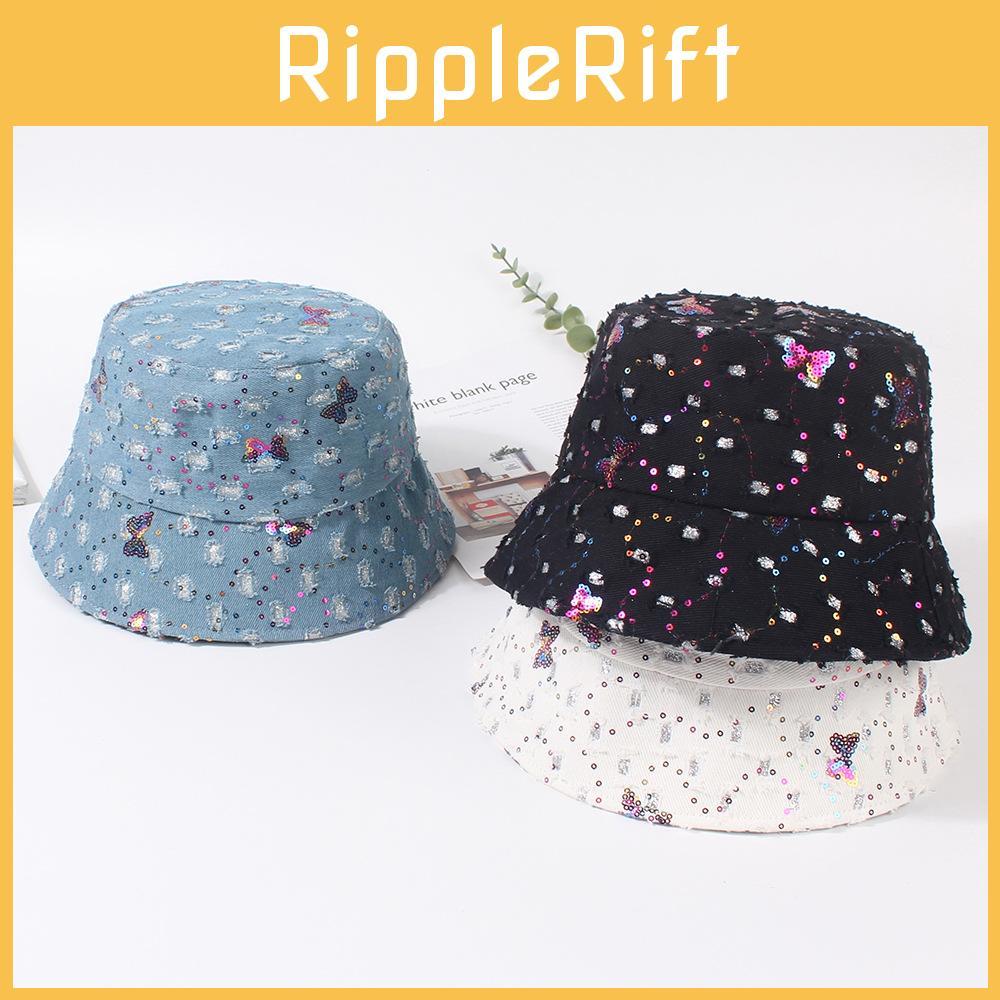 Japanese Style Denim Fisherman Hat With Sparkling Butterfly Bow Perfect For Summer