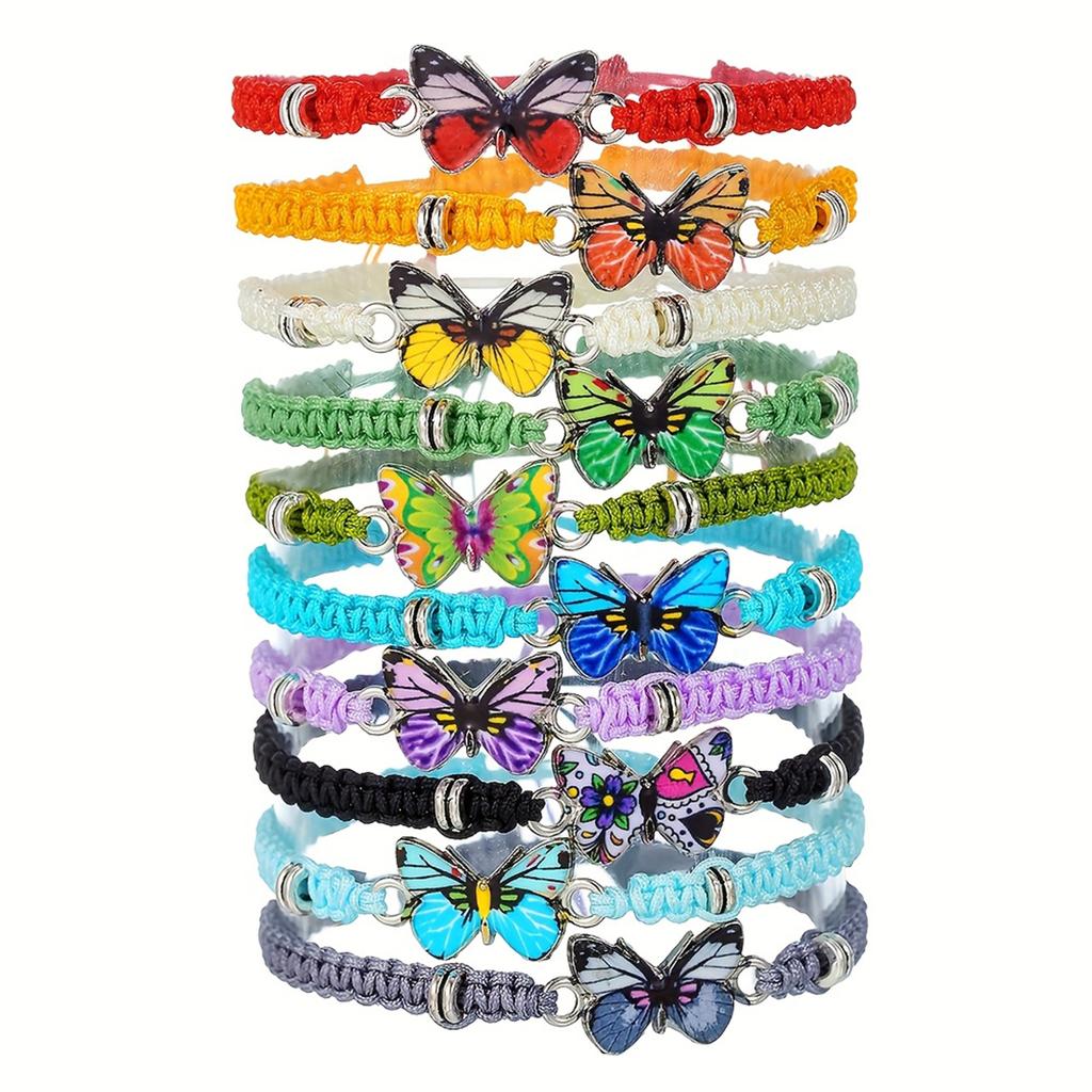 10-Piece Set Of Retro Colorful Butterfly Accessories Braided Bracelet Set Bohemian Stackable Adjustable Bracelets