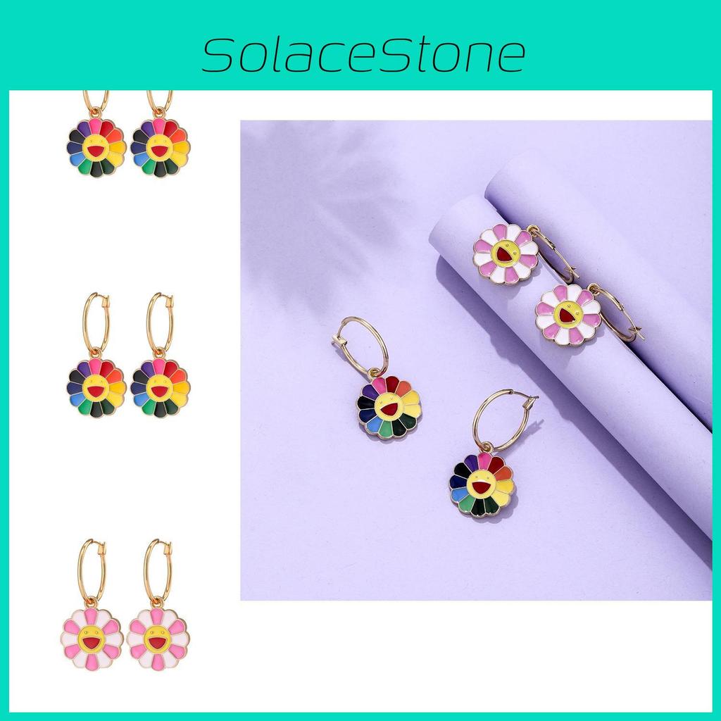 Unique Modern Daisy Oil Drip Ring With Colorful Flower Earrings In Alloy Jewelry
