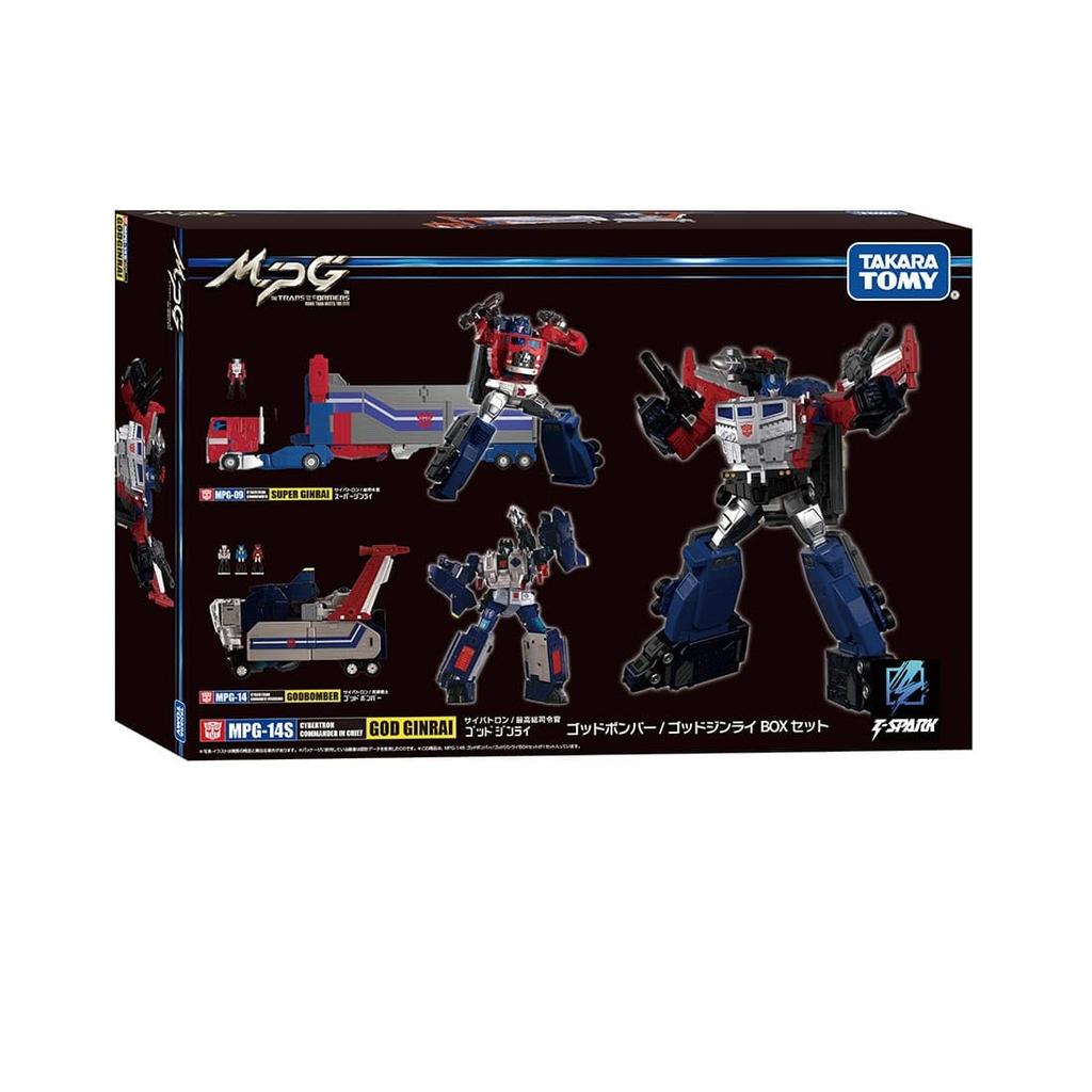 This special edition includes the "MPG-14 God Bomber" and a "God Jinrai Box" that can store the separately sold "MPG-09 Super Jinrai"! The armed warrior "God Bomber," who combines with Super Jinrai in the series, is perfectly recreated in MPG! Transforms from Armed Container Mode to Robot Mode. Robot Mode is fully posable with all joints moving. Armed Container Mode can tow the separately sold "MP-60 Jinrai" and "MPG-09 Super Jinrai" in their vehicle modes. Furthermore, by separating and transforming the God Bomber and combining it with the separately sold "MPG-09 Super Jinrai," you can recreate the Supreme Commander "God Jinrai." Included accessories include three Headmaster Jr. figures that can be mounted on the God Bomber, just like in the series. Also included is the "God Blade," the sword wielded by God Jinrai in the TV anime "Transformers V: Fight! Super Robot Lifeform." Effect parts can be attached to the God Bomber's chest and wing nozzles, and can also be attached to the fist to recreate the firing of the God Punch.