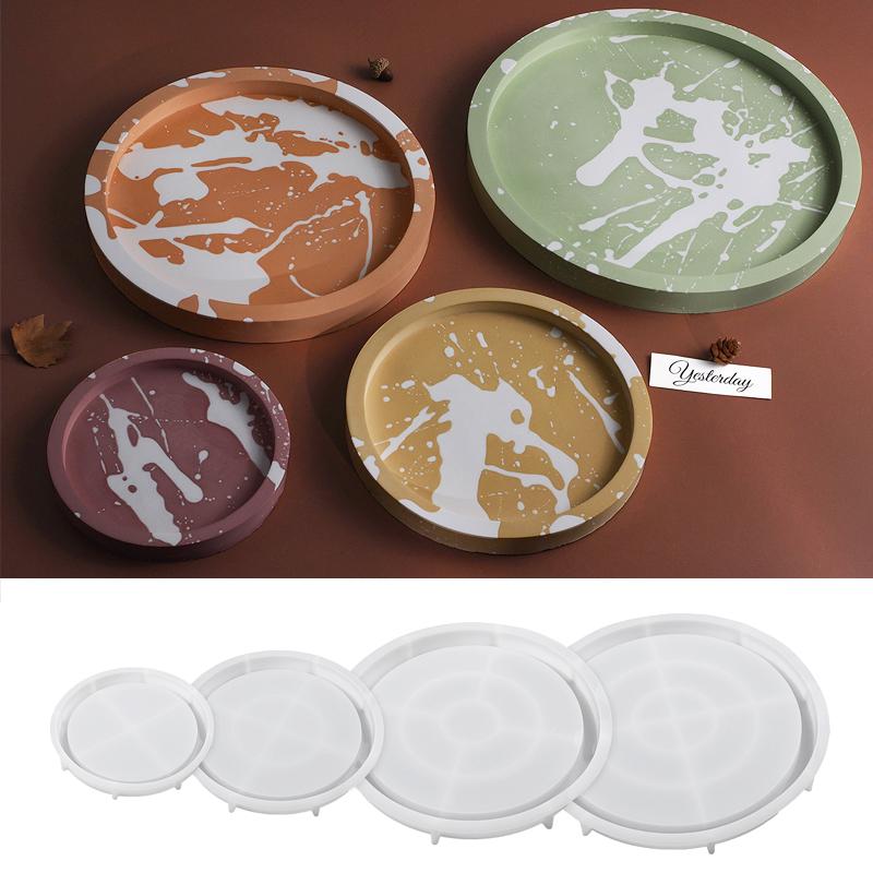 Round Cement Tray Silicone Mold DIY Handmade Round Storage Plate Molds Plaster Concrete Resin Coaster Casting Mould Home Decor