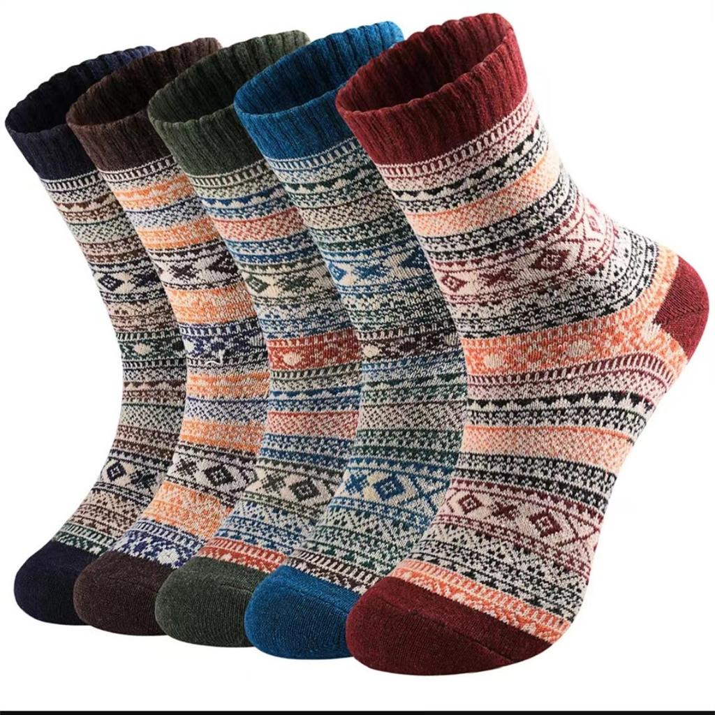 Socks, Plush Socks, Men's, Ethnic Style, Warm Socks, Mid Length Socks, Striped Socks, Coral Fleece Socks