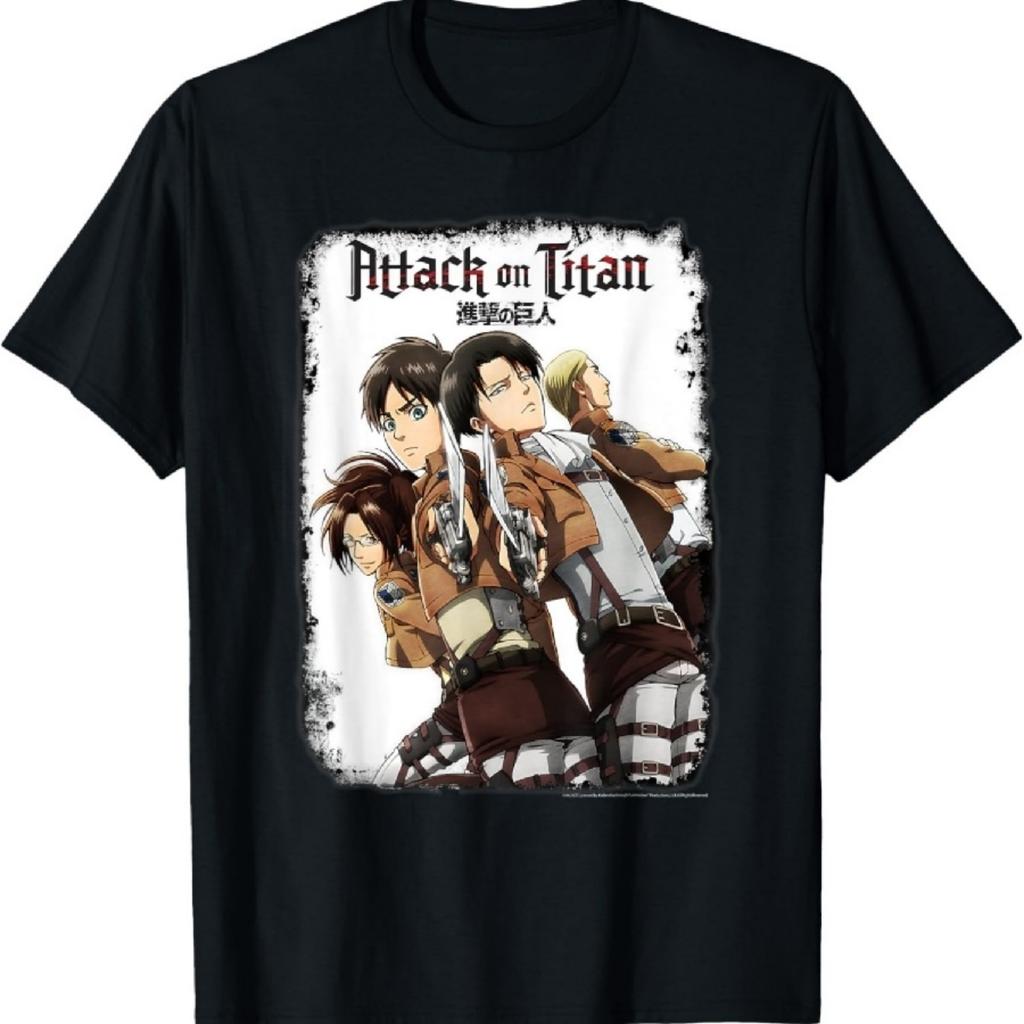Attack On Titan Group Portrait with Swords and Logo Anime T-Shirt