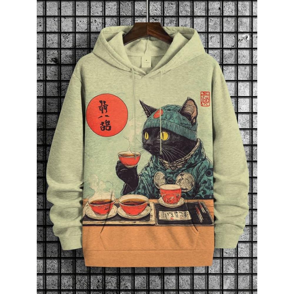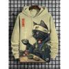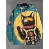 Cartoon Space Cat Pattern Hoodie Men's New Autumn/Winter Loose Pullover Sports Sweatshirt