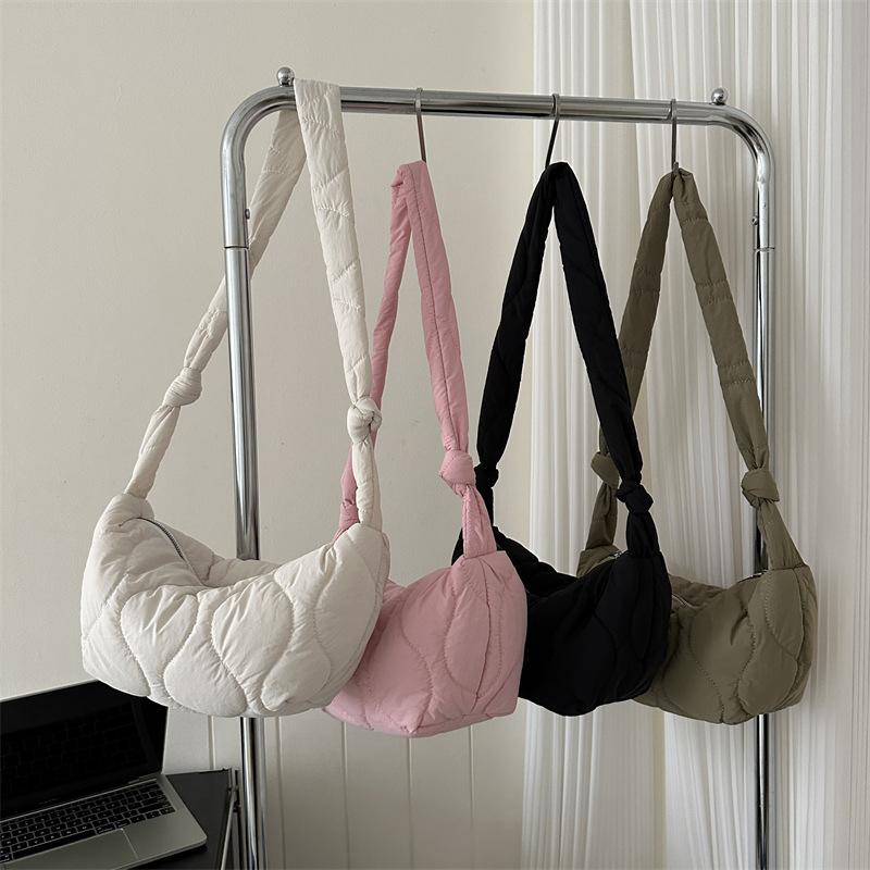 Female Puffer Shoulder Bag Trendy Soft Down Pillow Shopper Bag with Zipper Quilted Simple Crossbody Bag for Teenage Girls