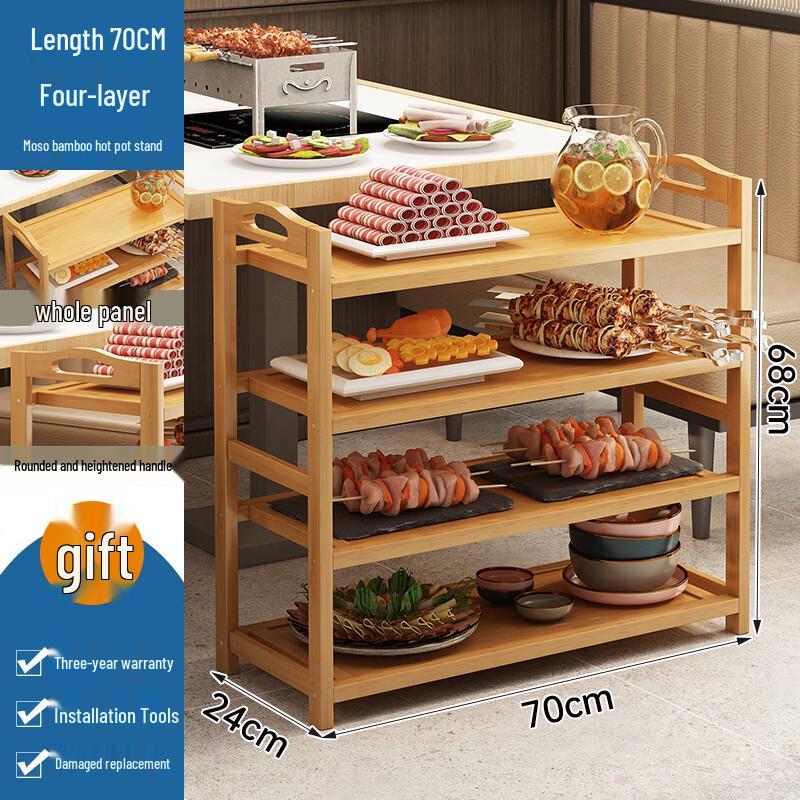 Bamboo Mid-Century Modern Kitchen & Hot Pot Serving Shelf