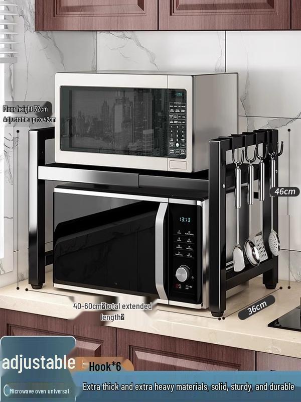 Retractable Aluminum Countertop Microwave Oven Rack with 6 Hooks