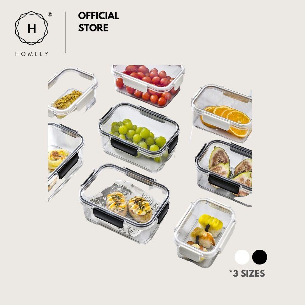 HOMLLY BPA-Free Air Tight Plastic Food Storage Container with Four-Latch Lid for Lunch, Meal Prep and Leftovers ( X3 PCS)