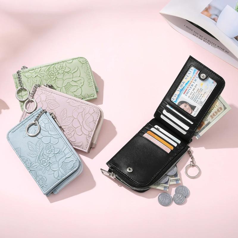 1Pcs Ladies Zip Coin Purse with Key Ring Embossed Design Multi Card Slots Large Capacity Wallet Fashion Accessories