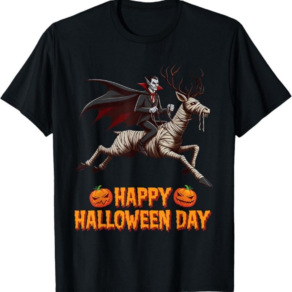 Dracula Riding a Mummy Stag Happy Halloween Animals Lover T-Shirt