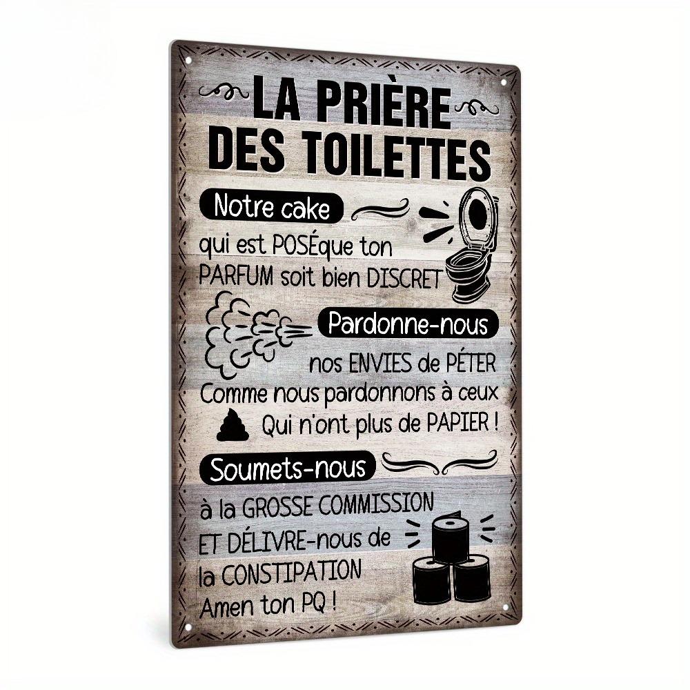 Decor French Vintage Metal Tin Sign - "La Prière Des Toilettes" Wall Art for Bathroom, Farmhouse Decor, Gift
