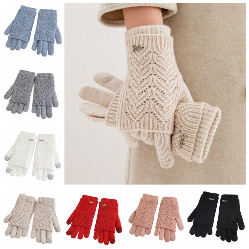Keep Warm Five-finger Mittens Dual-purpose Cycling Gloves Fashion Knitted Gloves Woman