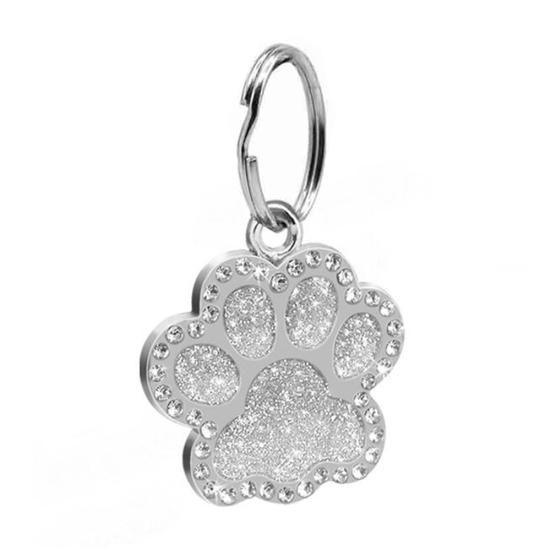Pet Dog Puppy Paws Rhinestone Collar Tags Charm Pendant Key Ring Accessories