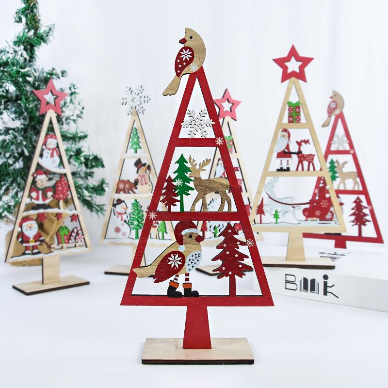 Wooden Christmas Tree Shaped Mini Pendants New Year Home Decor Gift Craft Props DIY Festival Party Tabletop Ornaments Gift