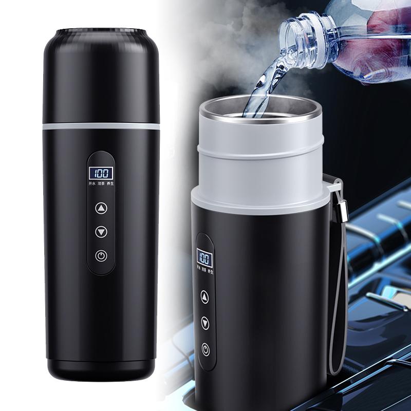 Stainless Steel Thermal Mug 500ml Car Heating Cup 12V 24V Electric Kettle Temperature Display Three Modes Travel Heater