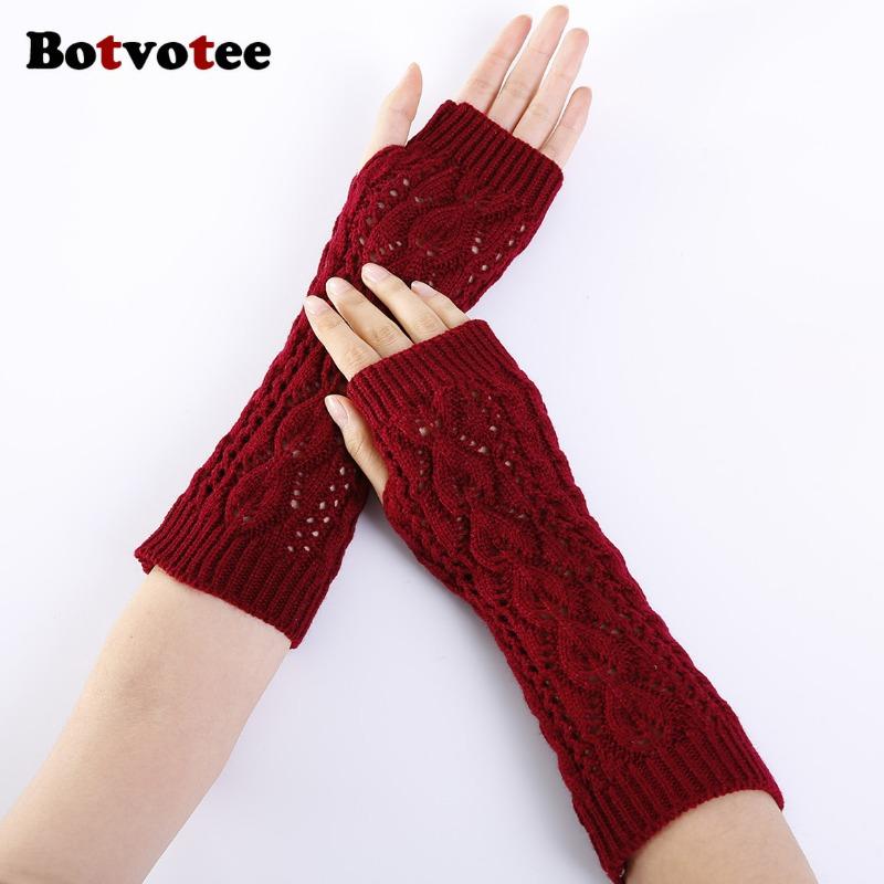 Botvotee Arm Warmers Y2k Accessories Hollow-out Sleeve Holder Winter Keep Warm Knit Accessories Fingerless Gloves Wrist Warmers