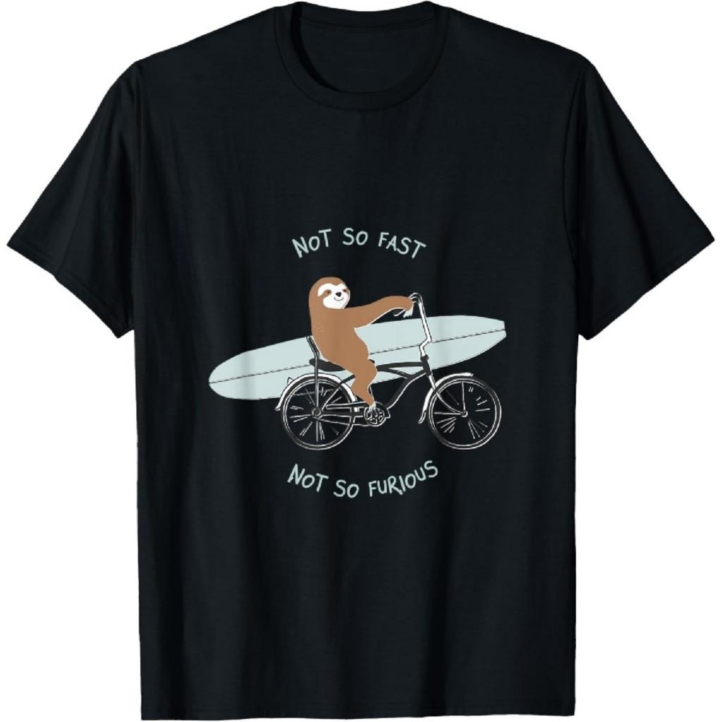 Funny Surf Sloth On a Bicycle Not So Fast Not So Furious T-Shirt