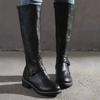 Women Leather Knee High Boots Women's Buckle Long Knight Boots Female Combat Boots Women Low Heels Shoes Plus Size 43