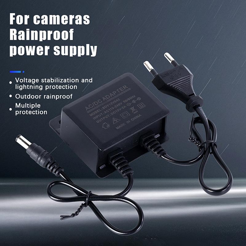 Stay Secure with Waterproof Power Adapter for Surveillance AHD Camera; EU/US Plug; DC12V 2A, Input AC100V-240V