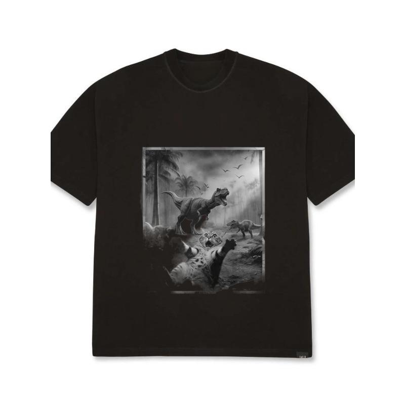 Oversized T-Shirt Black Dinosaur Jungle Scene Print Casual Streetwear Men's Fashion
