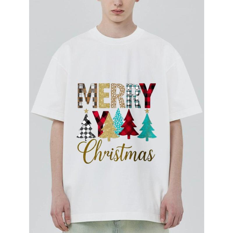 Merry Christmas T Shirt Black Plaid and Glitter Tree Pattern for Holiday Season