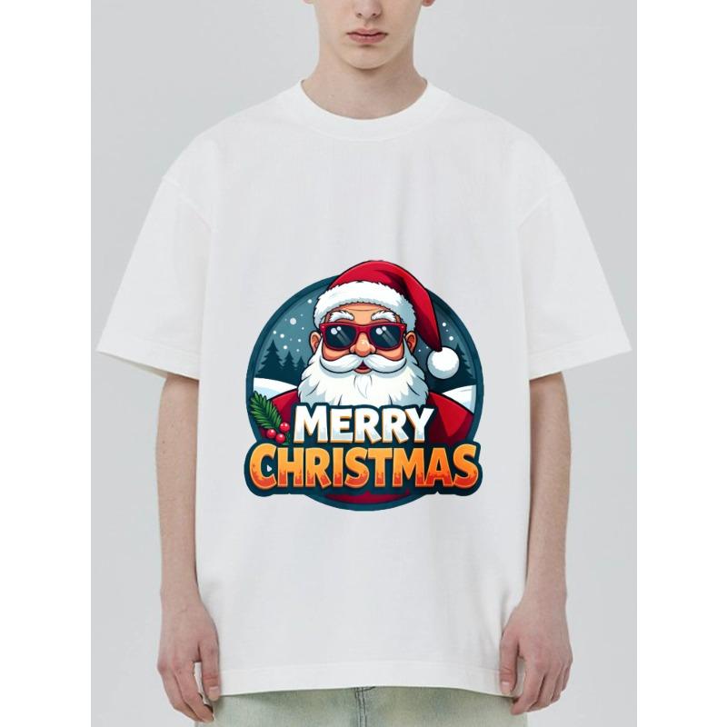 Christmas T Shirt Black Santa Claus with Sunglasses Merry Christmas Print for Holiday Party