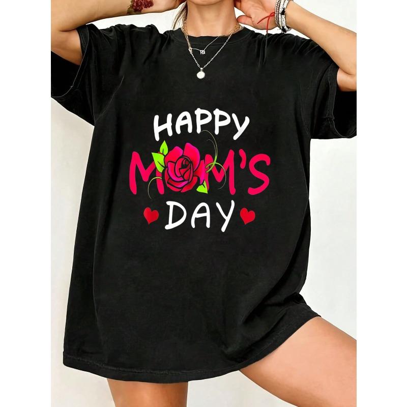 Happy Moms Day T Shirt Black Rose And Hearts Print For Mother S Day Celebration