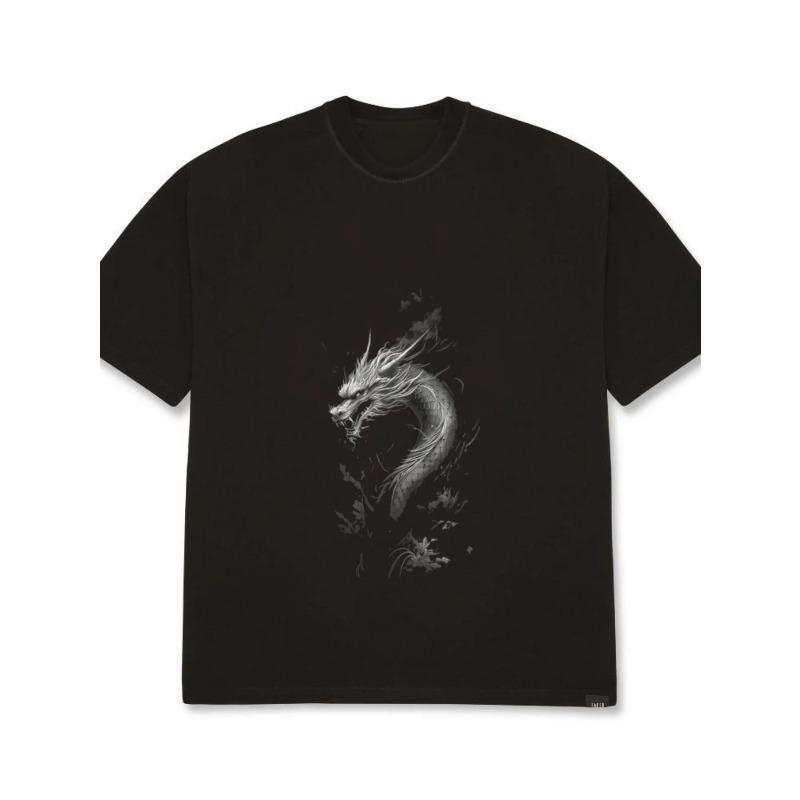 Oversized T Shirt Black Dragon Print Graphic Tee Men Casual Streetwear Fashion Top Unisex Daily Wear Urban Style Outfit