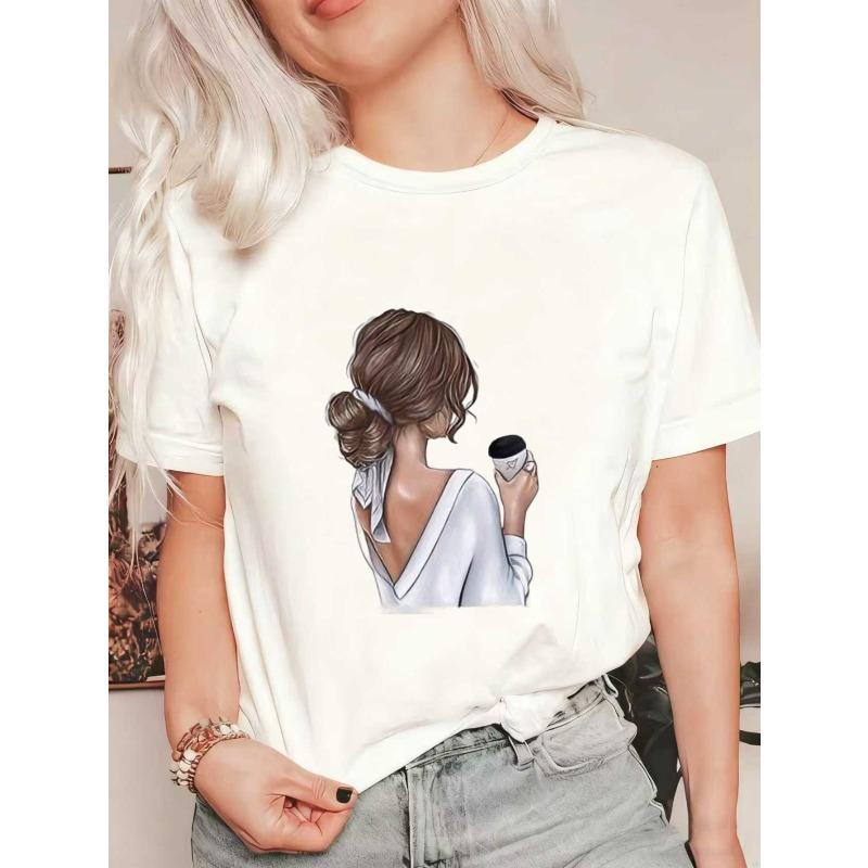 Black Oversized T Shirt With Woman Holding Coffee Cup Print Casual Everyday Wear
