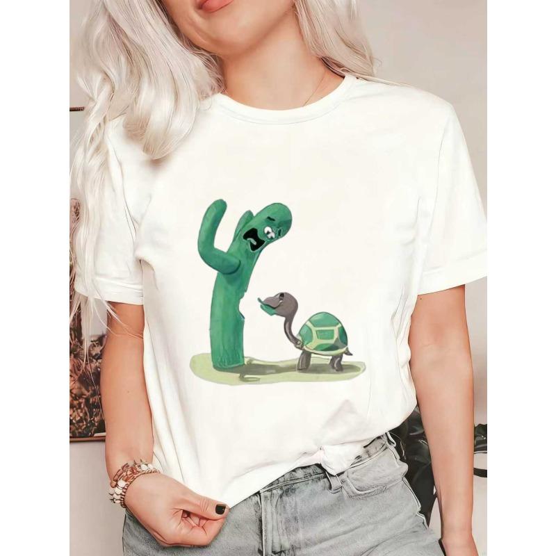 Oversized T Shirt Black Cactus And Turtle Print Casual Wear For Women Summer Streetwear Fashion Top