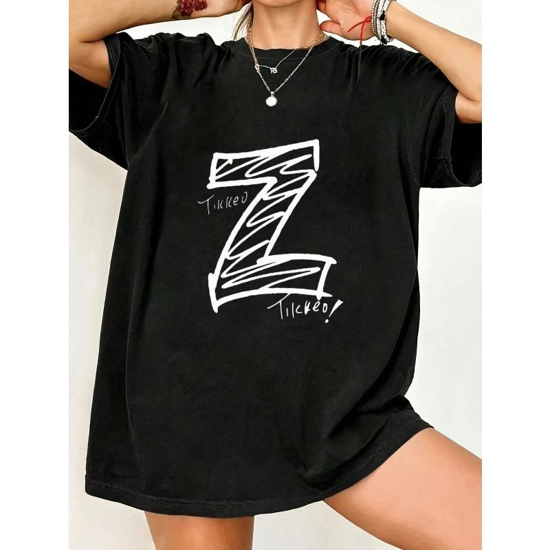 Oversized T Shirt Black Z Letter Graphic Print Tikkeo Text Casual Streetwear Style For Women And Men