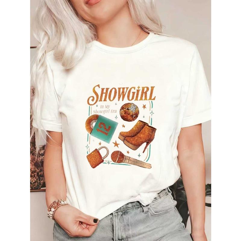 Showgirl Oversized T Shirt Black Showgirl Era With Disco Ball Boots Microphone And Lock Print For Casual Party Wear