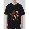 Koi Fish Lotus Flower Printed Black T Shirt for Men Casual Streetwear Summer Outfit with Chinese Calligraphy Design