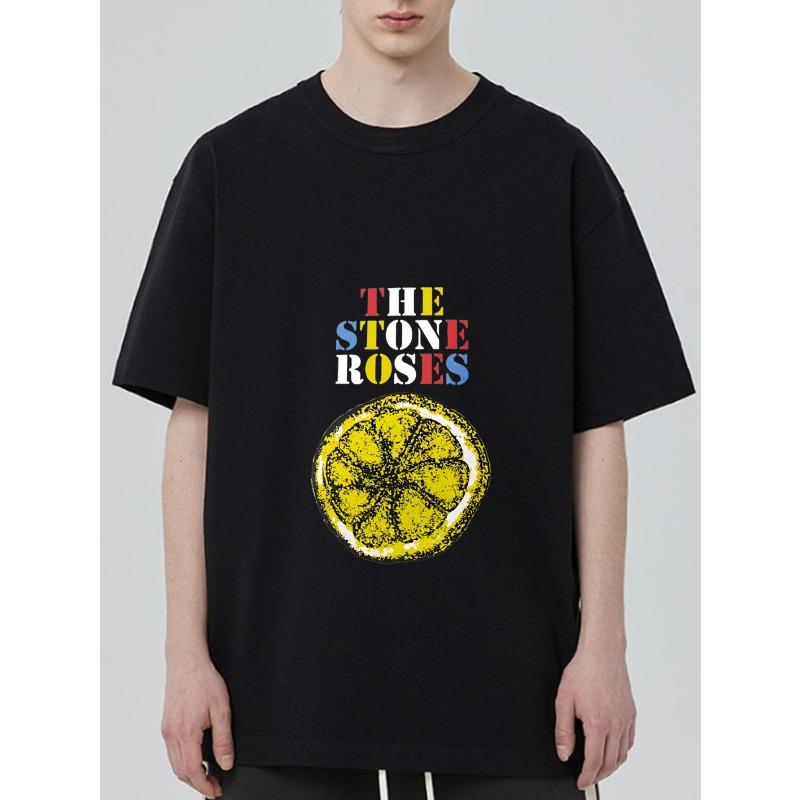 The Stone Roses Black T-Shirt with Lemon Print and Band Name for Casual Wear