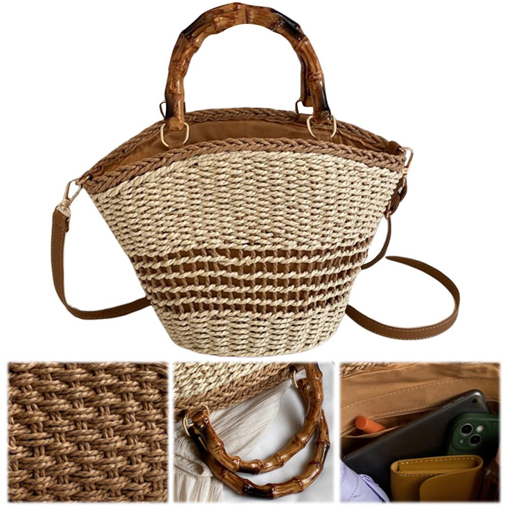 Women Woven Shoulder Bag Zipper Summer Beach Bag Casual Handbag Clutch Purse for Travel Vacation Shopping