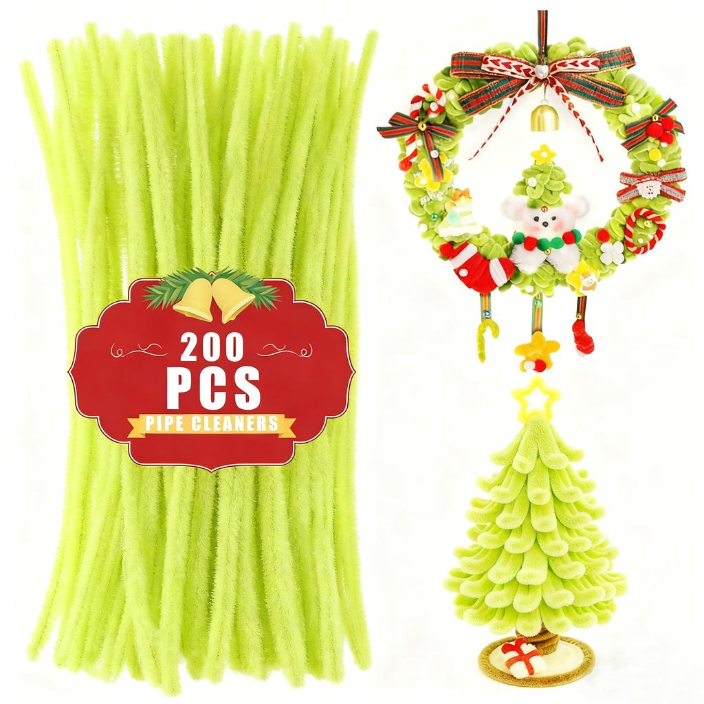 200Pcs Chenille Stems Willow Green Christmas Pipe Cleaners Craft Supplies for DIY Art Projects Christmas Party Decorations
