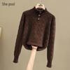 Tachi Women's Ruffle Trim Mock Neck Knit Top
