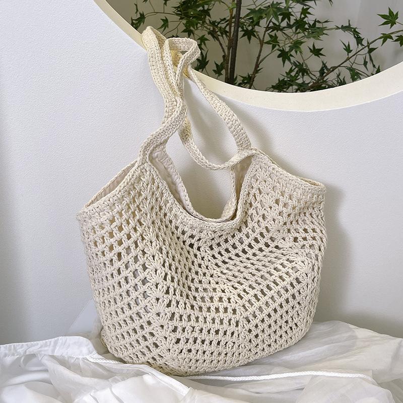 New Fashion Casual Lazy Wind Woven Tote Bag Commuting Light Hollow Armpit Shoulder Beach Bag Women