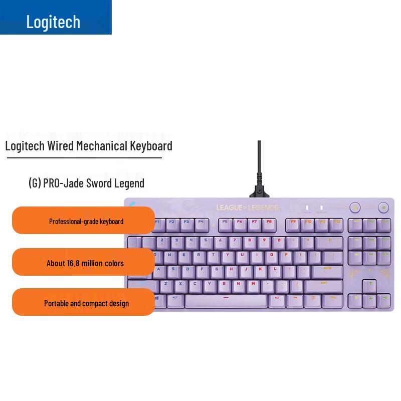 Logitech PRO X 87-Key RGB Wired Gaming Mechanical Keyboard, Jade Sword Legend Edition
