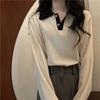 Polo Collar Casual Top for Women In Autumn Loose Slim Long-sleeved Lapel Bottoming Shirt for Women