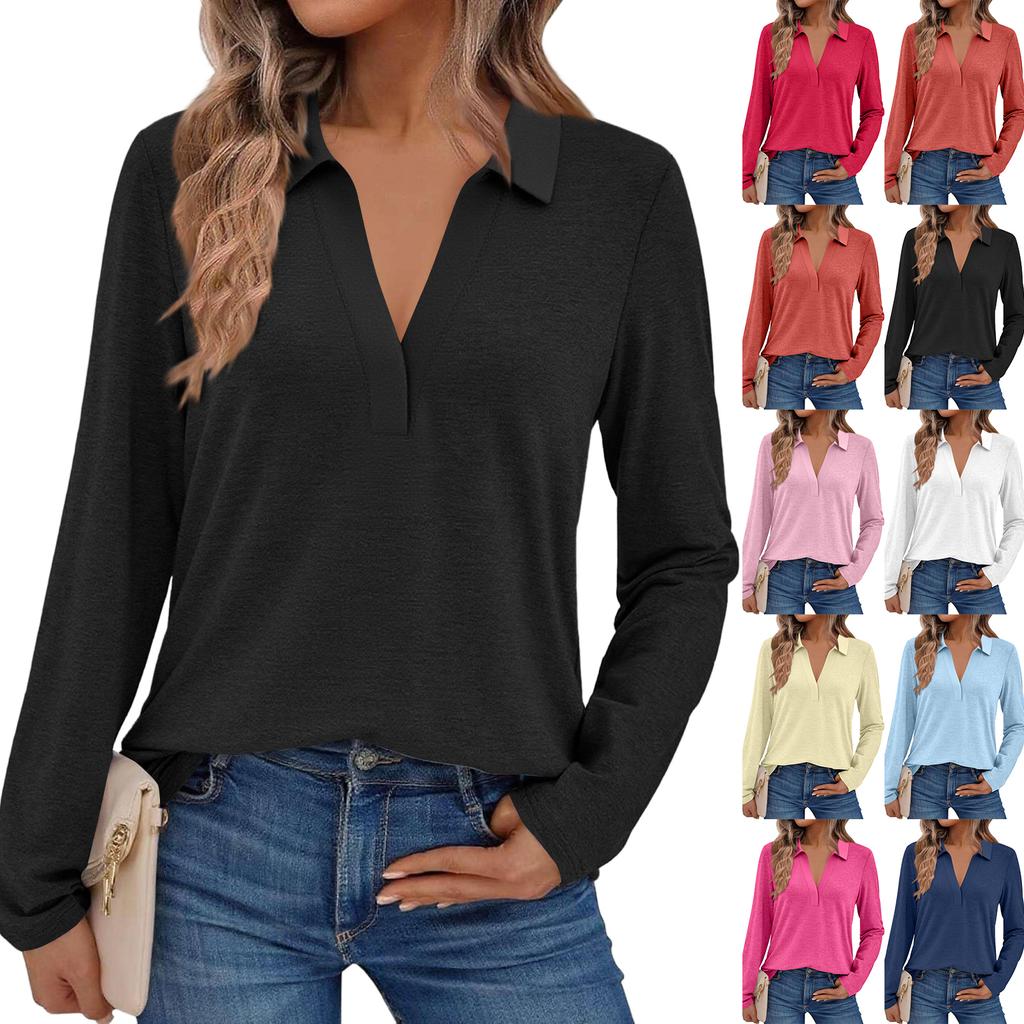 Women's Fashion Long-Sleeved Solid Color Stand Collar Shirt