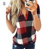 Women t-shirt makes you look beautiful and attractive with the v neck and plaid pattern design.