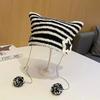 Y2K Beanie Hat Women Ins Devil Ear Striped Knitted Wool Cap Autumn Winter Hip-hop Crochet Cute Cat Ears Pointed Pullover Hats