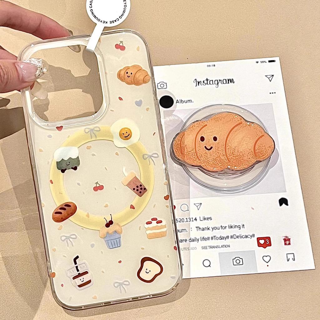 Ins Wind Bull Horn Magnetic Bracket for Apple 16Promax Phone Case for IPhone 17/14 Women 13 Autumn/Winter